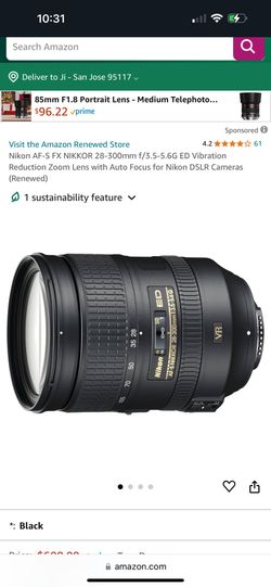 Nikon AF-S FX NIKKOR 28-300mm f/3.5-5.6G ED Vibration Reduction Zoom Lens with Auto Focus for Nikon DSLR Cameras $600Campbell, CA