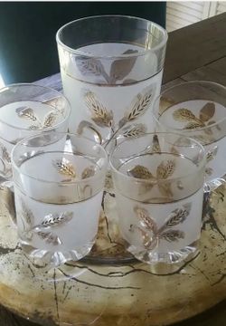 Italian 50s Frosted Glass Ice Bucket & 4 Glasses. Gold Leaves. Displayed Only. EUC$30Miami, FL