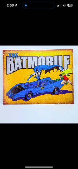 DC Comics The Batmobile with Batman & Robin Retro Look Metal Tin Sign 12.5"x16"$7Boca Raton, FL