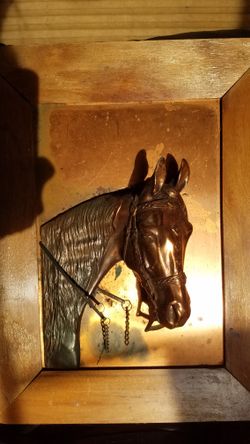 Vintage Framed Copper Equestrian Horse Head in Relief