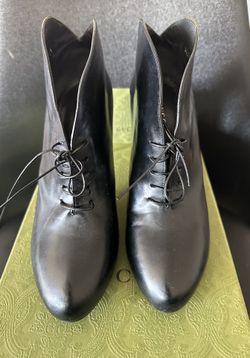 GUCCI BLACK LEATHER GG CURVED HEEL KIM ANKLE BOOTS SIZE 37.5$250Los Angeles, CA