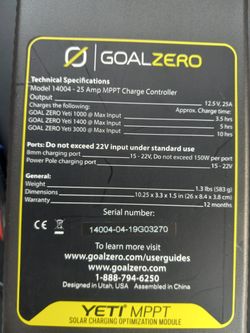 GOAL ZERO MPPT CHARGER$85Sacramento, CA