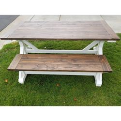 (New)🔥Farmhouse Dining Table with Bench - Solid Wood💯 $699Menifee, CA