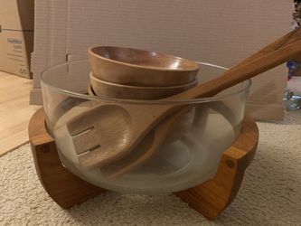 Wood and Glass Salad Bowl Set - New$40Kent, WA