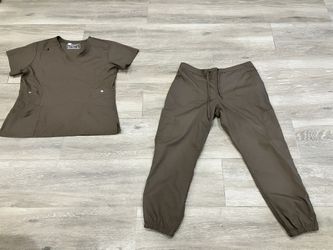 Medgear Medical Spa Uniform Scrubs Brown Womens Size XLarge Great condition V Top + Drawstring Bottom $30Boca Raton, FL