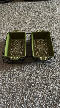 Temptations by Tara Bakeware Carved Old World (2) 1.5 Qt Loaf Pan w Trivet Rack$20Haltom City, TX
