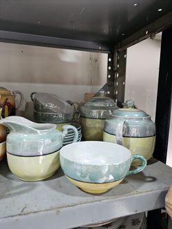 Japanese Mid Century Lusterware Teapot Creamer Sugar Green Yellow $60Pittsburg, CA