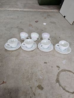 Vintage Anchor Hocking Fire King Aurora Swirl White Pearl Opalescent Iridescent Tea Cups$150Pittsburg, CA