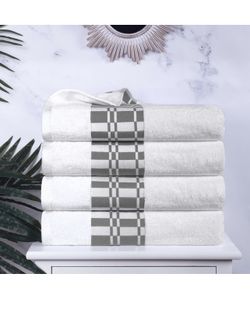 4-Piece Cotton Bath Towel Set, Geometric Design, Dobby Border white(50”L x 28”W)$45Hialeah Gardens, FL