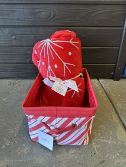 Christmas Hallmark Fleece Blanket and Candy Cane Striped like Canvase Bin with handles$25Homer Glen, IL