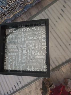 Wood W Glass Clear Base With Writings CELIBRATE OPEN SIDES FOR CARRY GREAT FOR PLACING ON LIVING ROOM TOBLE TO HOLD REMOTE MAGAZINE TEXT FOR MEASUREM$45Boynton Beach, FL