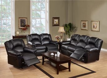Black Faux Leather Sofa Set With Manual Recliner $999Riverside, CA