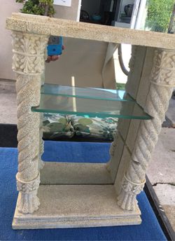Ceramic shelving with one glass shelf 14 inches tall 9 1/2 inches across$25HUNTINGTN BCH, CA