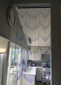 5‘11“ height and 2 feet 9 1/2 inches across yeahCobalt blue beaded door drapes or anything you want$40HUNTINGTN BCH, CA