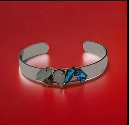 5" Silver Tone Cuff Bracelet Blue Green Pink Clear GemStones A53$10Princeton, FL