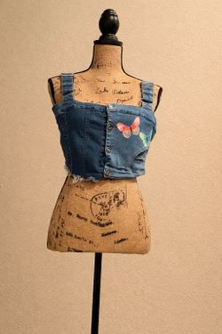 Denim Butterfly Crop yTop – Bust 28 in – Handmade/Upcycled Look$45Friendswood, TX