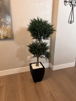 5 Foot Double Ball Cypress Topiary Tree w/ Black Ceramic Planter UV Resistant$150Gilbert, AZ