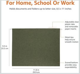 Amazon Basics Hanging Organizer File Folders for Efficient Filing, Sturdy, Adjustable Tabs, Letter Size, Over 150 , Green$35Sacramento, CA