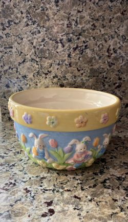 Blossoms & Blooms large ceramic Easter Bunnies bowl$15IL, US