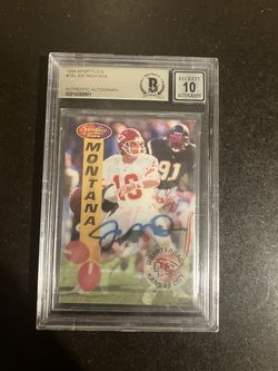 1994 joe montana sportflics autographed chiefs nfl football card beckett auto gem mt 10$300Alpine, NJ