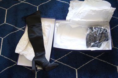 Stuart Weitzman Highchamp Ebony Stretch Satin Boots size 9$550Tamarac, FL