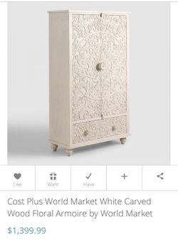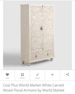 White Carved Wood Floral Armoire$489Las Vegas, NV