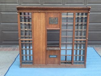 Antique Oak Post Office Sorting Station Front w/ Teller Window & Glass Mailboxes$1,400Lake Forest, CA