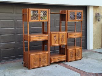MCM Faux Bamboo Chinoiserie 3-bay Freestanding TEAK Wall Unit$1,800Lake Forest, CA