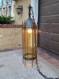 Antique c.1910 French Gothic Iron & Bronze Hall Lantern Pendant Light$1,000Lake Forest, CA