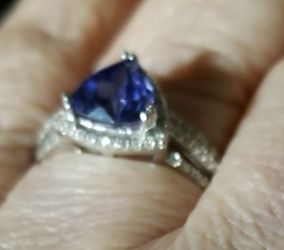 Trillion 3Ct tw Tanzanite and Diamond Ring, SS, EUC$150White Plains, NY