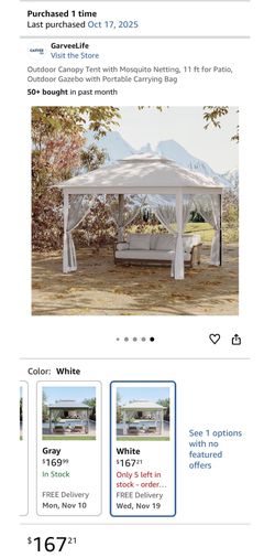 *BRAND NEW* Outdoor Canopy Tent 11 ft with Mosquito Netting – Patio/Gazebo – GARVEE Life$140Richmond, CA