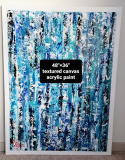 Large 36" x 48" Abstract Acrylic Paint Textured Canvas Art, Blue Theme 💙$75Austin, TX