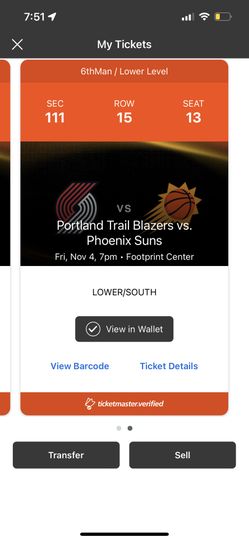 Phoenix Suns Ticket For 11/04$225Phoenix, AZ