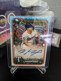 Texas Rangers Wyatt Langford Holiday Short Print Rookie Auto Baseball Card$140Ontario, CA