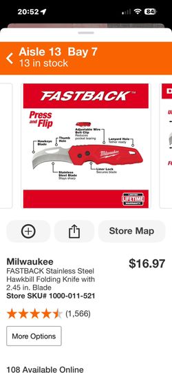 Hook Blade Milwaukee Knife $15$15Tulare, CA