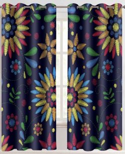 Mexican Folk Floral Pattern Boho Faux Embroidered 84” Thermal Blackout Curtain Panels $30Blue Island, IL