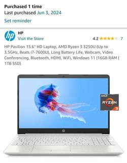 HP Pavilion 15.6" HD Laptop, AMD Ryzen 3 3250U (Up to 3.5GHz, Beats i7-7600U), Long Battery Life, Webcam, Video Conferencing, Bluetooth, HDMI, WiFi, W$399Lithia, FL