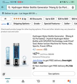 Hydrogen Water Bottle, Up to 6000ppb | Hang & Go Portable Hydrogen Water Bottle Generator with SPE/PEM Technology, Leak-Proof Design for Home, Office,$25Las Vegas, NV
