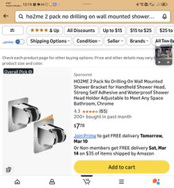 HO2ME 2 Pack No Drilling On Wall Mounted Shower Bracket for Handheld Shower Head, Strong Self Adhesive and Waterproof Shower Head Holder Adjustable to$4Las Vegas, NV