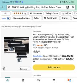 360° Rotating Folding Cup Holder Table, Steering Wheel Tray, Car & Laptop Desk - Car Accessories for Women & Men, Fit Tesla Model Y/3/S/Explorer/Maver$55Las Vegas, NV