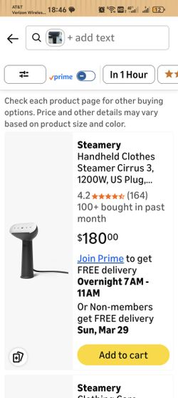 Steamery Handheld Clothes Steamer Cirrus 3, 1200W, US Plug, Heated Ironing Plate, Fast Heat Up, Garment Wrinkle Remover, Black$50Las Vegas, NV