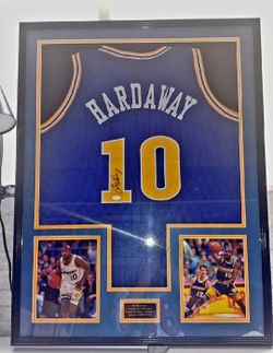 TIM HARDAWAY GOLDEN STATE WARRIORS SIGNED AUTOGRAPHED CUSTOM FRAMED JERSEY 99%UV DOUBLE MATTE SOLID OAK JSA COA HOLOGRAM$500Pacifica, CA