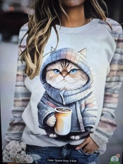 Women's Pullover Cat Print Sweatshirt $10Pittsford, MI