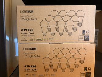 LIGHTNUM A19 LED Light Bulbs, 100 Watt Equivalent LED Bulbs, 5000K Daylight LED Bulbs, 1500LM, Standard E26 Base, 13W Bright White Light Bulbs Indoor,$12Corona, CA