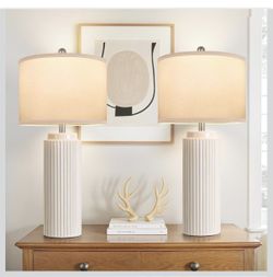 Sold28’’ Farmhouse Ceramic Table Lamps Set of 2 for Living Room, Cream Vintage Bedside Table Lamps with White Linen Shade, Rustic Nightstand Lamps for Bed$45Corona, CA