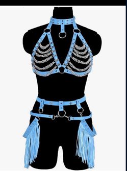 New Womens Waist Harness Leather Belt Metal Chain Body Tassel Punk Festival Dance Rave Costumes Lingerie Garter Belts Color: Sky Blue Size: One Siz$30Riverside County, CA