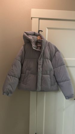 Unisex Light Gray Puffer Jacket – Women’s Style (Oversized Fit) Size L$40Hillsboro, OR