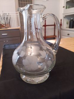 VTG 10 Inch Clear Floral Etched Glass Pitcher Decanter$20Tulare, CA