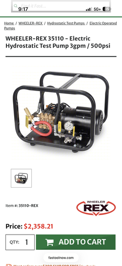 Wheeler-Rex 35110 - Electric Hydrostatic Test Pump 3gpm/500psi “Brand New in the box”$0Mesa, AZ
