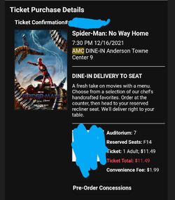 Spiderman: No Way Home Ticket$300Cincinnati, OH